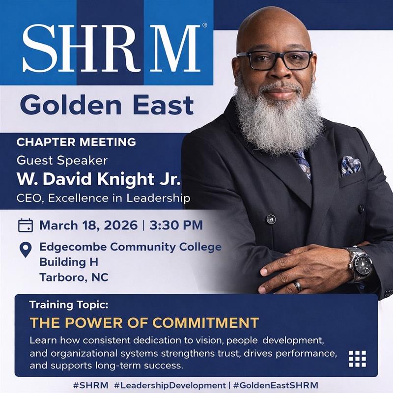 Join us on March 18, 2026 at 3:30 PM at Edgecombe Community College – Building H in Tarboro, NC for an engaging leadership session with our guest speaker W. David Knight Jr., CEO of Excellence in Leadership.